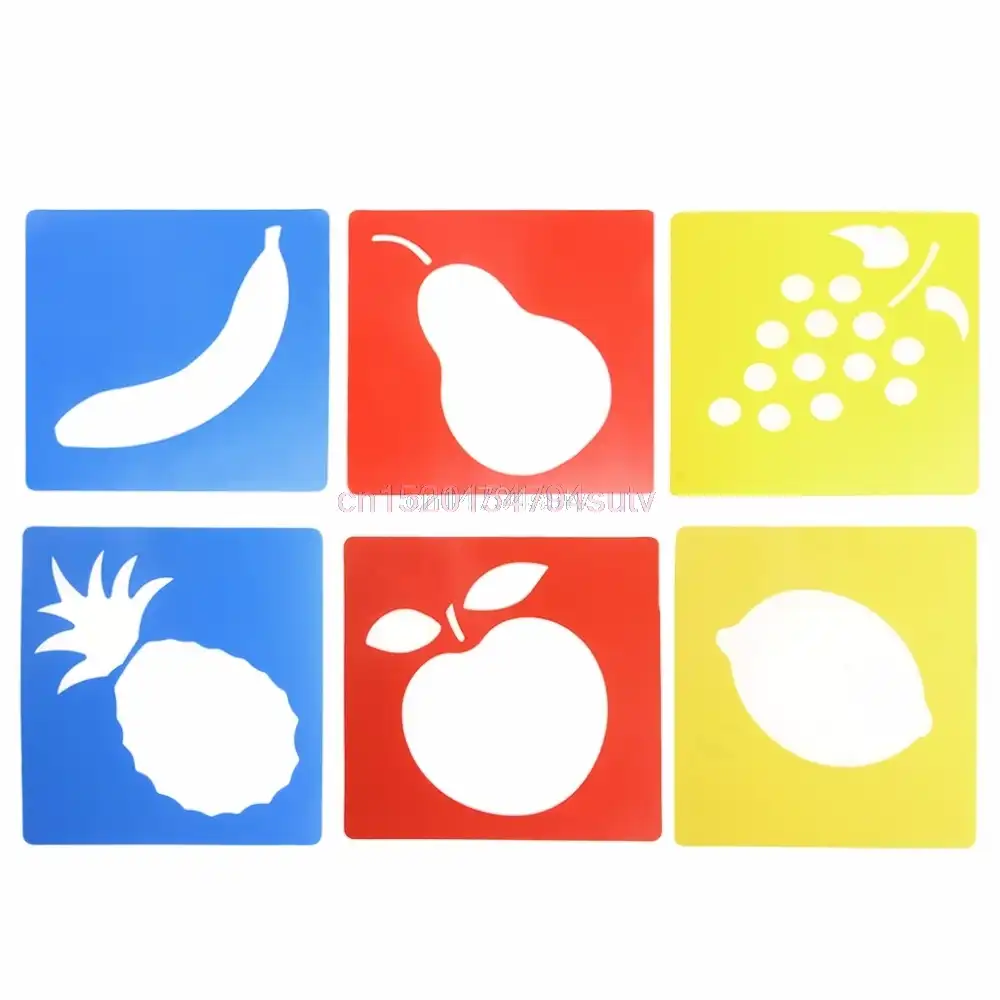 6pcs Plastic Fruit Shape Picture Drawing Template Stencils