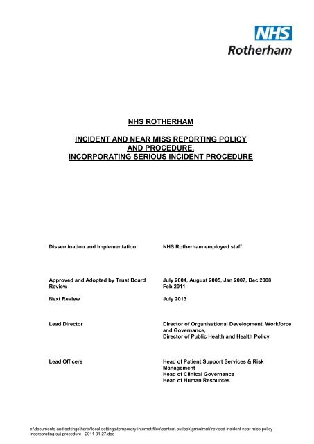 Incident Near Miss Policy Rotherham Ccg