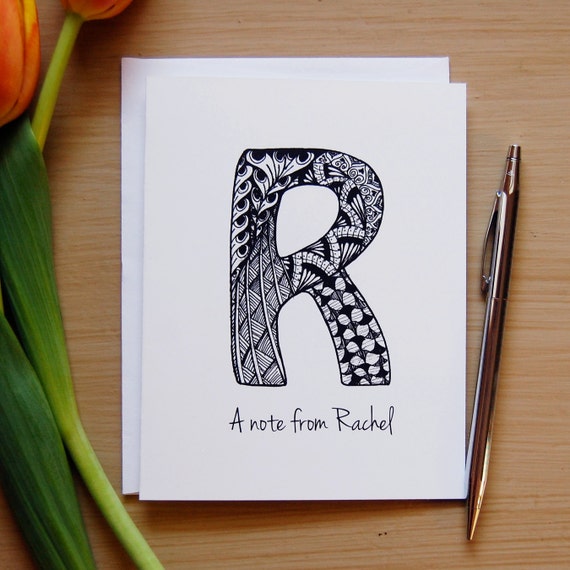 Personalized Note Cards R Monogram Zentangle Note Card Thank You Note Coworker Gift Bridesmaid Gift Teacher Gift Illuminated Letters