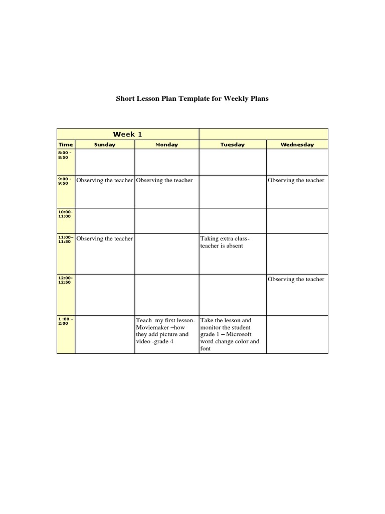 Short Lesson Plan Template For Weekly Plans Lesson Plan