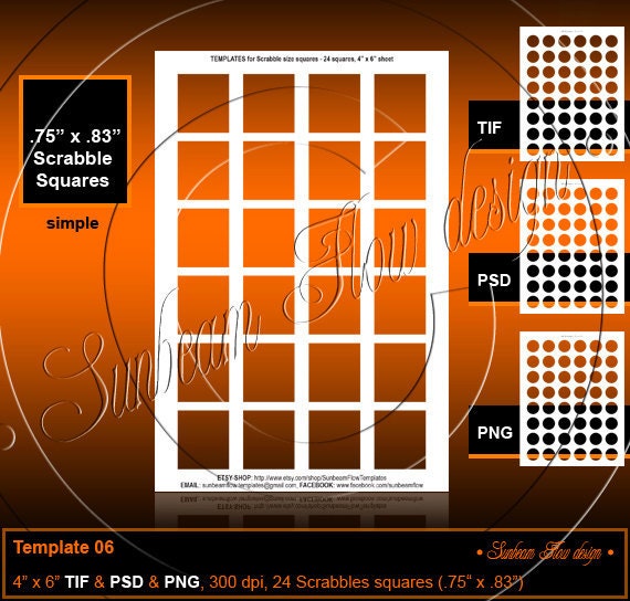 Instant Download 24 Scrabble Size Squares 06 Template 75 X 83 Printable Bottlecap Jewelry Magnets Glass Resin Hangtags Print Your Own