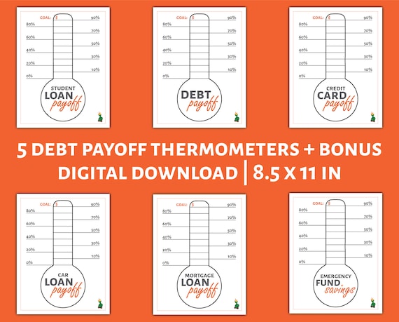 Debt Thermometer Colorable Tracker Printable Bundle Pack With Bonus Emergency Fund Goal Tracker By Howtofire