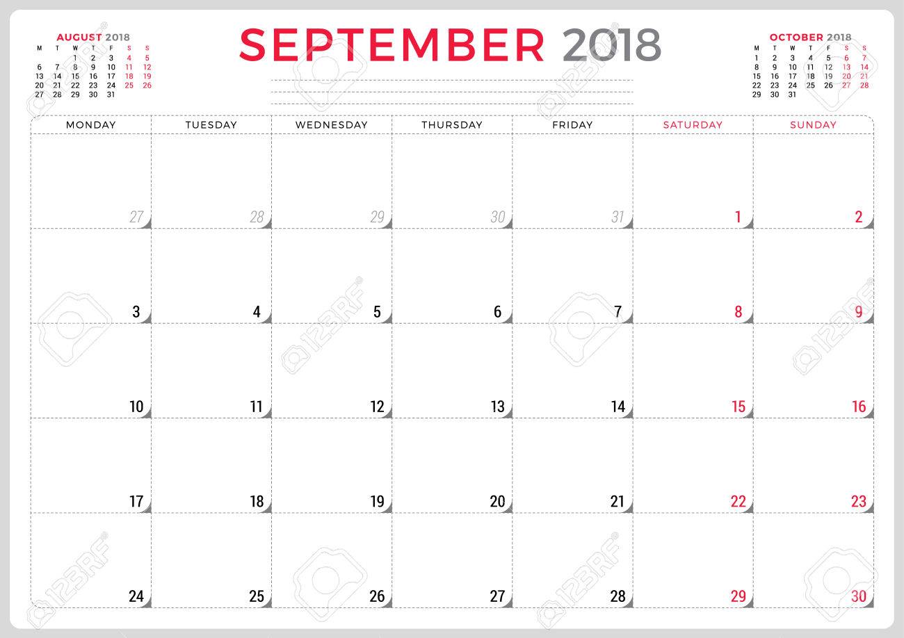 Vector Calendar Planner Template September 2018 Stock Vector