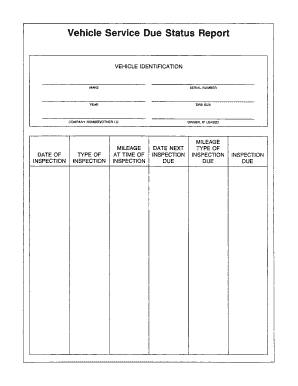 Vehicle Service Due Status Report Form Fill Out And Sign