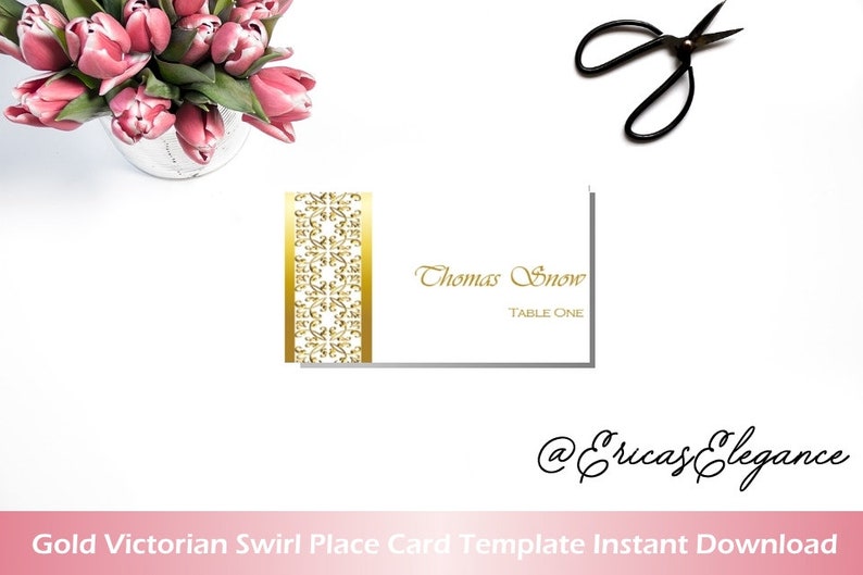 Diy Printable Wedding Place Cards Gold Art Deco Gatsby Victorian Swirl Template Editable Microsoft Word Tent Card Diy U Print