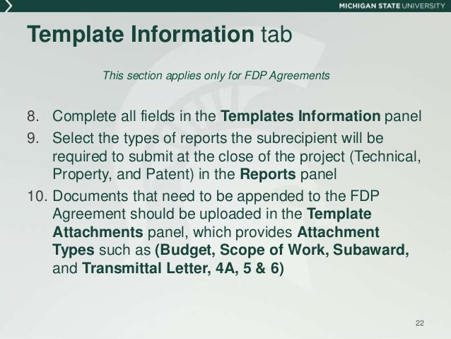 Data rights subrecipient grants to marquette license to use data created in the performance of this subaward for the purpose of education and research or to the extent required to meet marquettes obligation under the prime award. Pass through entities may use their own form of subaward agreements provided the requirements of 2 cfr 200331a are met. Subaward forms the fdp subaward templates included below were designed to expedite and streamline federal subaward review among fdp member institutions.