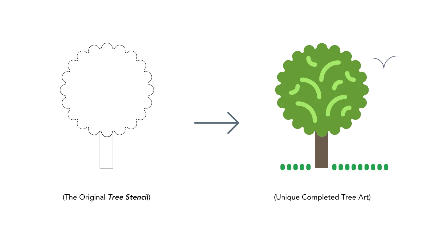 Set Of Abstract Trees With Geometric Shapes Outline Template