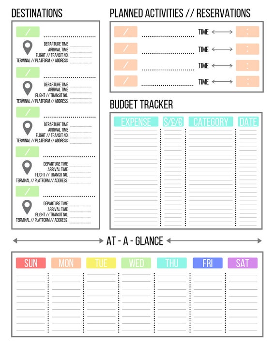 Travel Budget Planner Template Weekly At A Glance Planner Printable Vacation Planning Sheet And Budget Log 8x10 8 5x11 Letter Size