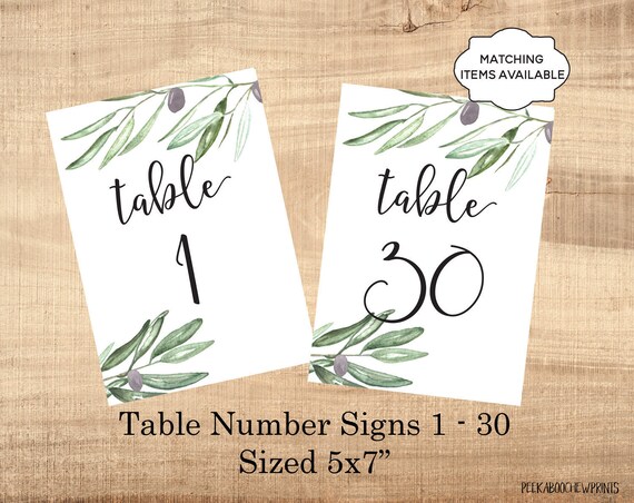 Table Number Signs Printable 5x7 Wedding Table Marker 1 50 Banquet Party Dinner Luncheon Benefit Table Identifier Olives Boho Leaves Pcolws
