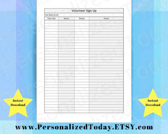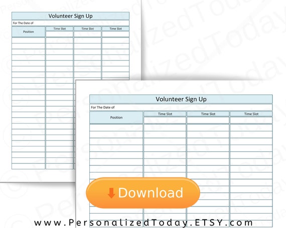 Printable Volunteer Sign Up Sheets Single Position Multiple Time Slots Pdf Digital Download Horizontal And Vertical Files In Us Letter Size