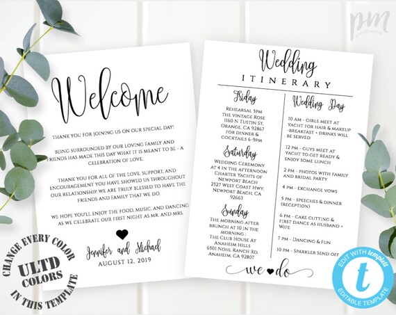 Wedding Itinerary Template Download Printable Wedding Itinerary Fully Editable Welcome Note Wedding Timeline Welcome Letter Wbwc