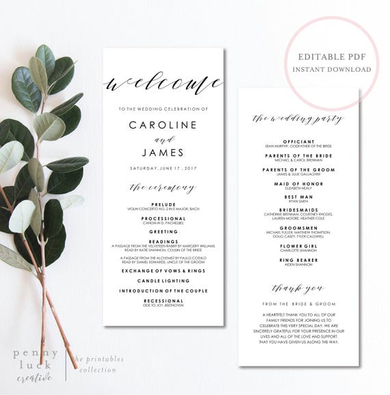 Wedding Program Template Download Elegant Wedding Programs Editable Template Wedding Simple Wedding Programs Wedding Program Download