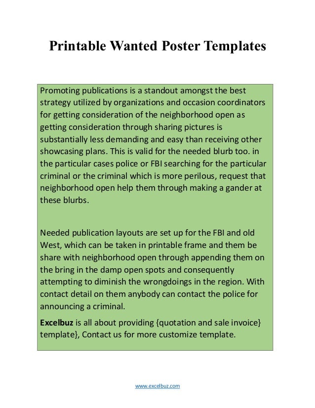 This is because their main aim was to create awareness to the public that the person was being sought by the police. Wanted poster template for microsoft word the prize money or say bounty is also given to the person who gives any information of the criminal to the police and because of this many citizens so interest in finding the criminals and this helps the police a lot and reduce their time and work.