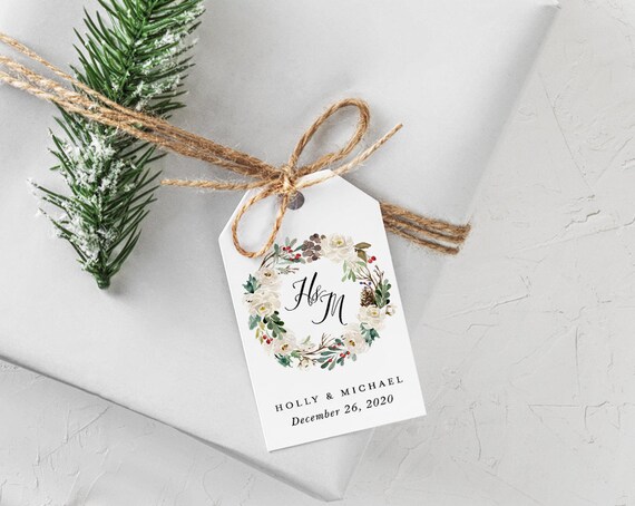 Winter Wedding Gift Tags Template Printable Digital Instant Download Diy Thank You Favor Monogram Pdf Rustic Christmas Floral Holly Templett