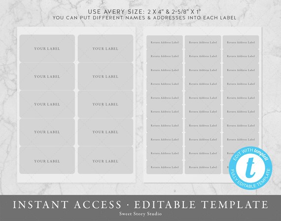 Wedding Guest Addressing Return Address Label Template Set Instant Download Templett Avery 2 X 4 1 X 2 5 8 Dc065