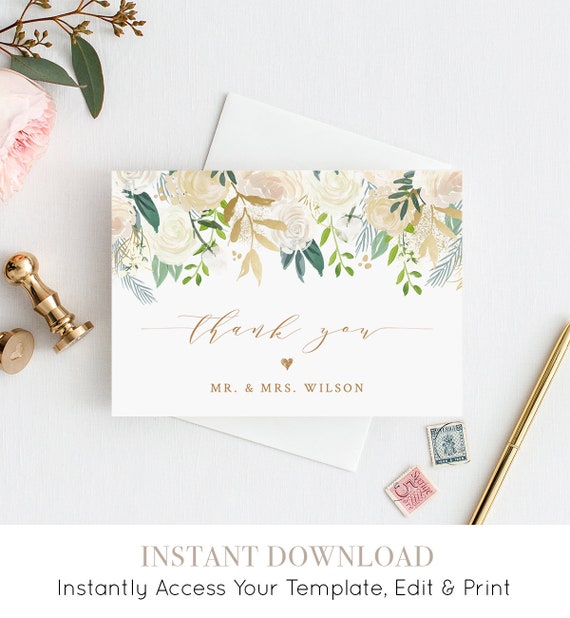 Thank You Card Template Printable Wedding Bridal Shower Thank You Folded Note Card Instant Download Self Editing 3 5 X5 021 105tyc