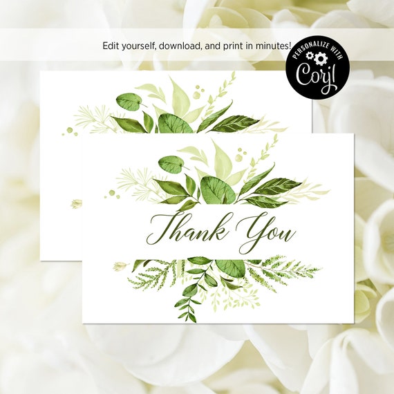 Editable File Greenery Thank You Card Green Foliage Bridal Shower Thank You Note Baby Shower Thank You Wedding Stationery Corjl Template 263