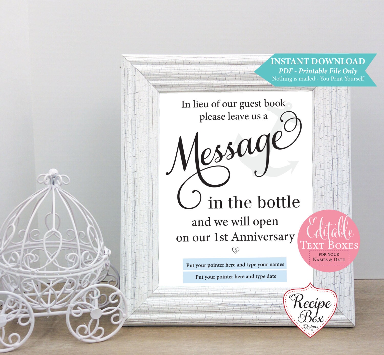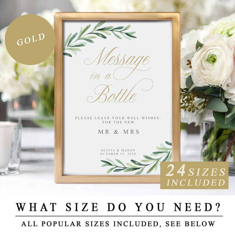 Greenery Message In A Bottle Wedding Guest Book Sign Gold Calligraphy Editable Wedding Guestbook Template Advice Card Instant Download