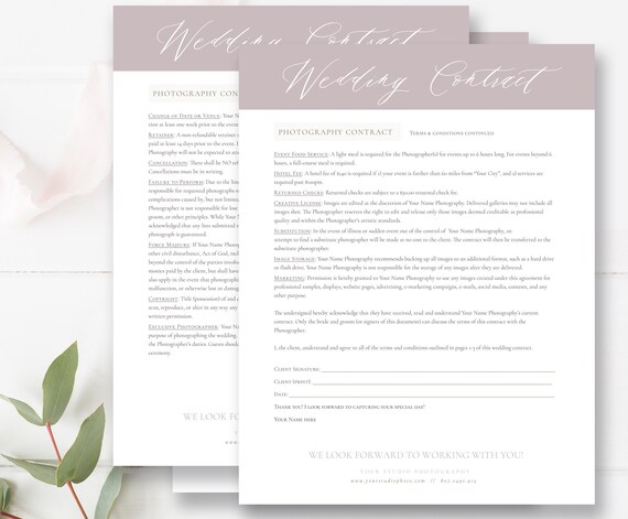 Wedding Photography Contract Wedding Agreement Photography Business Forms Photoshop Template Instant Download