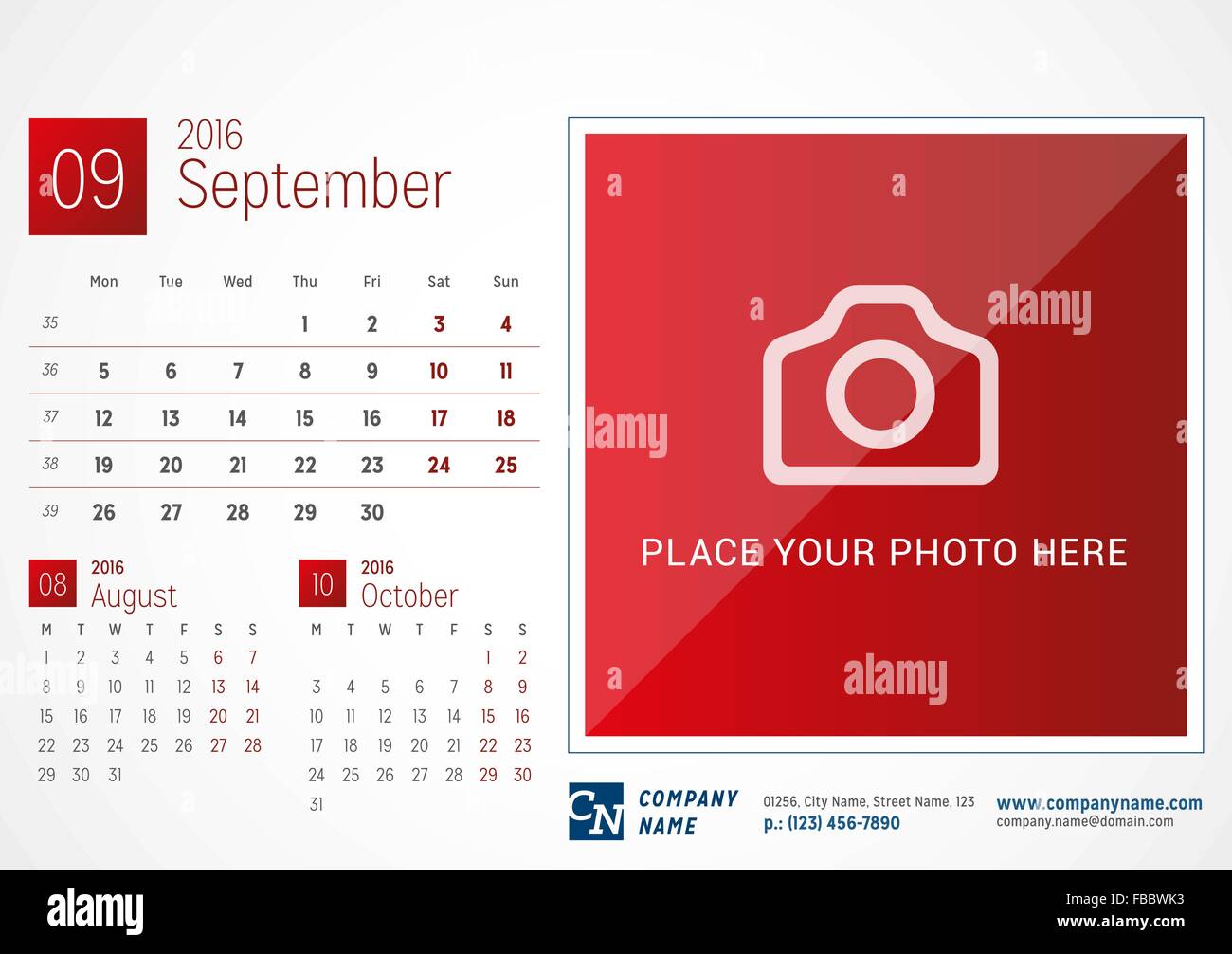 Desk Calendar 2016 Vector Print Template September Week