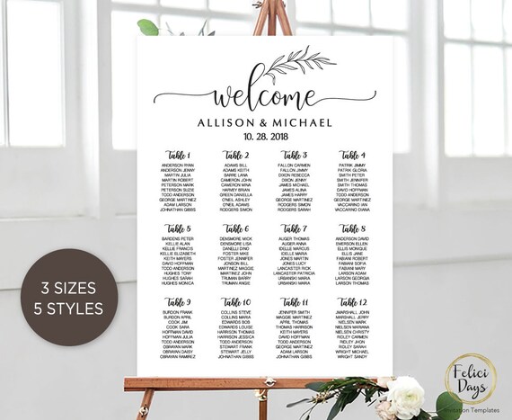 Wedding Seating Chart Template Seating Chart Display Wedding Seating Cards Table Cards Seating Cards Pdf Instant Download Bpb310 5