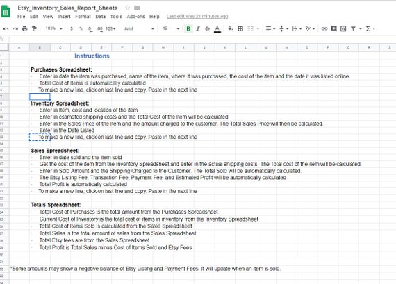 Etsy Sales Spreadsheet Template For Sales Purchases Inventory With Video Tutorial For Microsoft Excel