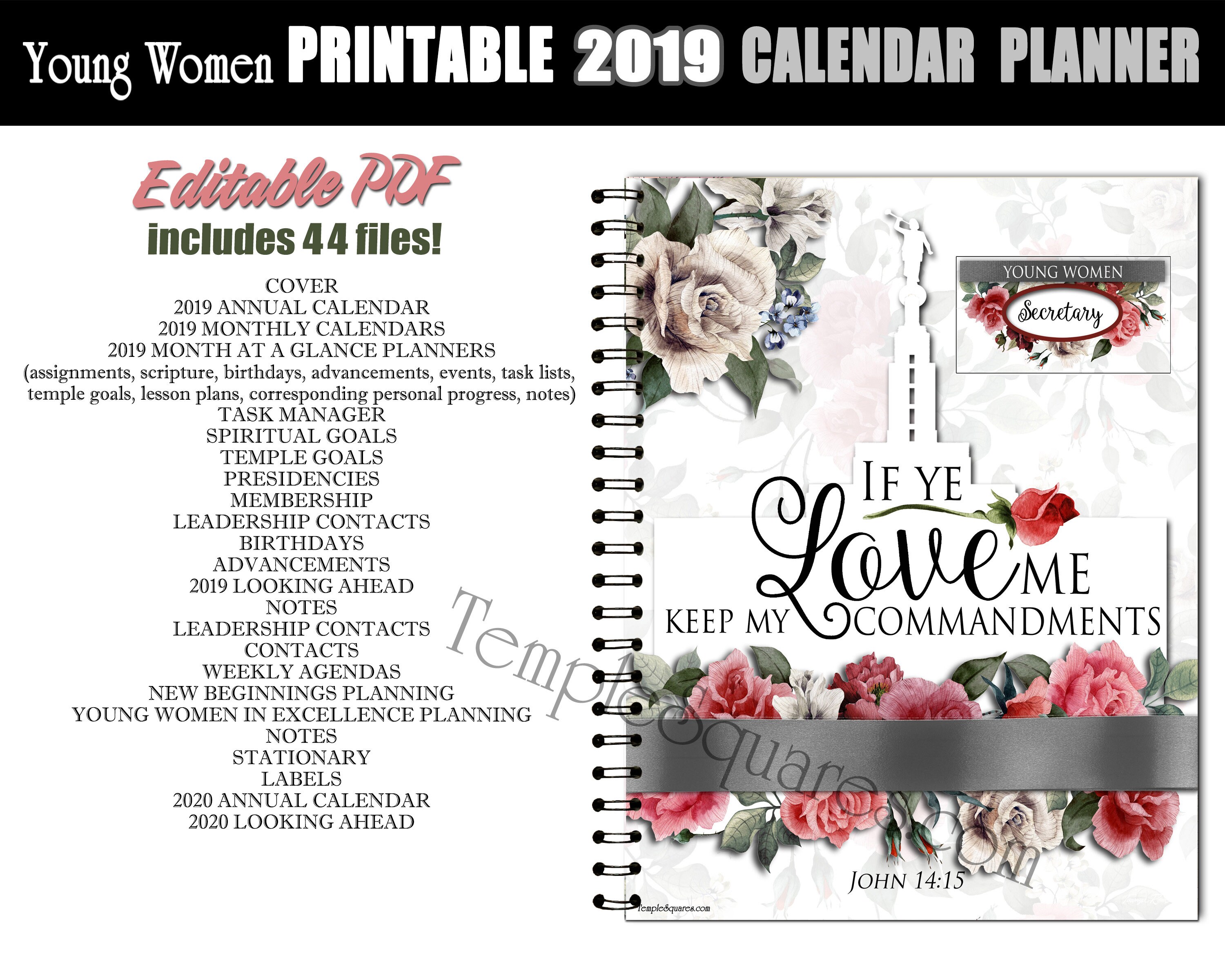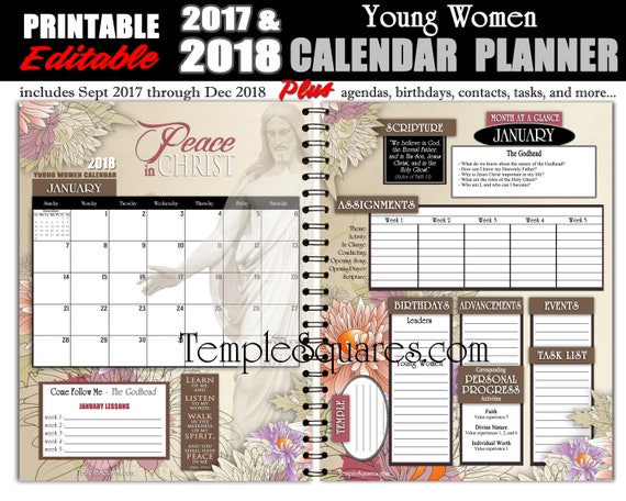 Stake Use License Editable Yw Presidency Calendar Planner 2018 Peace In Christ Printable Bundle Instant Download Young Women Diy Calendar