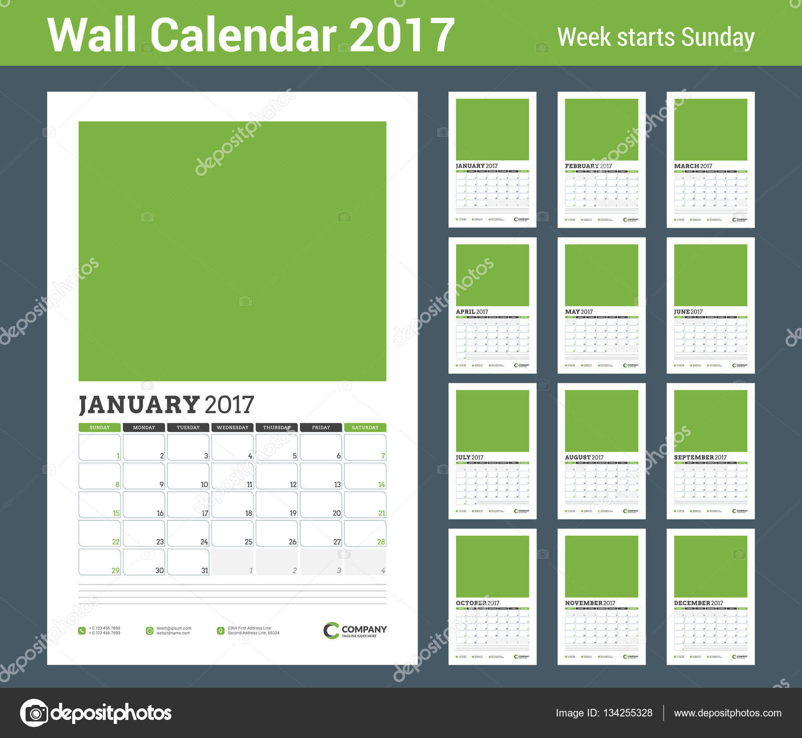 Wall Calendar Planner Template For 2017 Year Set Of 12