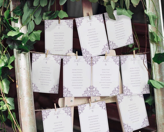 Elegant Wedding Seating Chart Template Printable Seating Charts Seating Plan Vintage Frame Nadine Lavender Lilac Editable Pdf