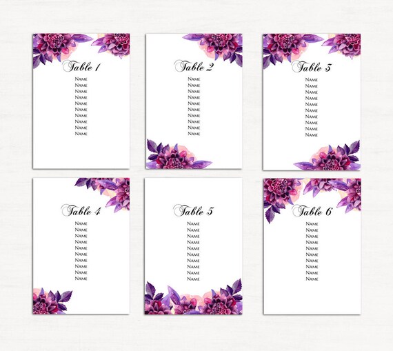 Purple Wedding Seating Chart Template Floral Seating Plan Diy Flowers Table Plan Printable Botanic Seating Chart Digital Download 1w125