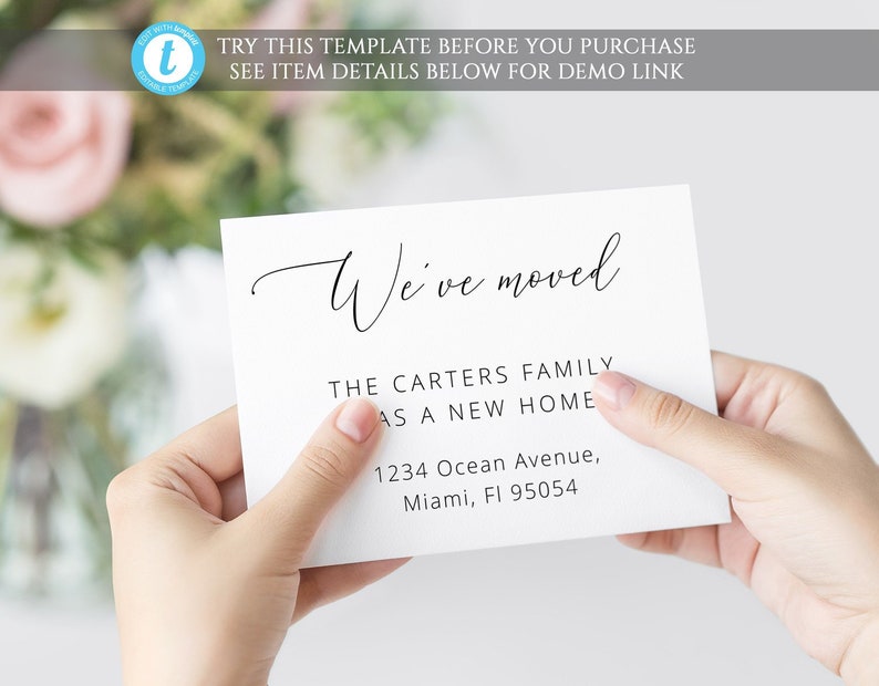Calligraphy We Ve Moved Template Printable New Home Card Template Address Announcement Template Editable Moving Card Template Templett