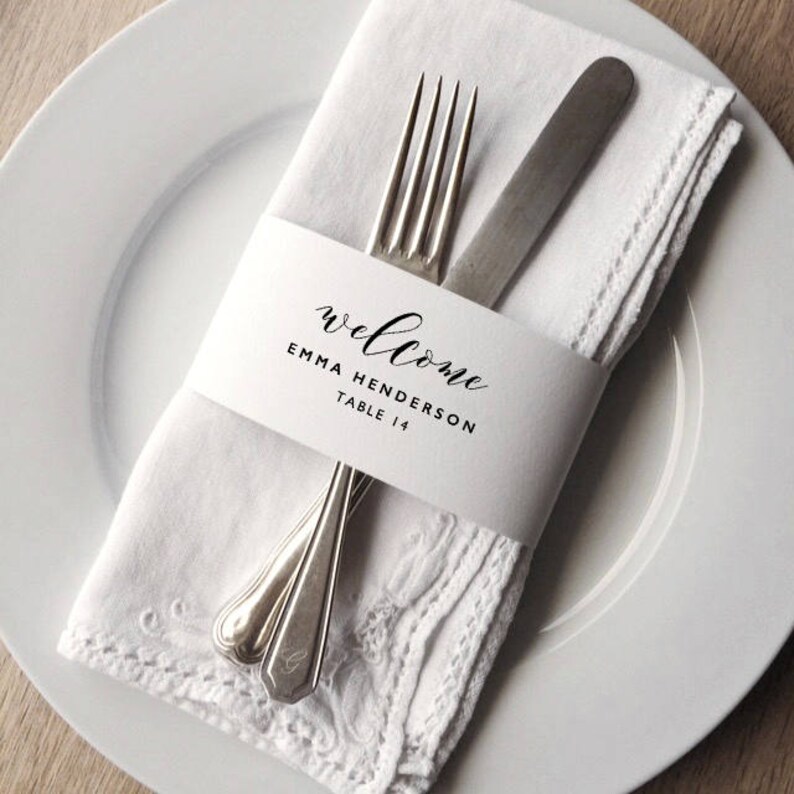 Napkin Wrap Place Card Template Printable Wedding Place Cards Napkin Ring Place Setting Editable Wedding Place Cards Template Kpc01 208