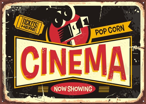 Cinema Retro Tin Sign Vector Design Template Vintage