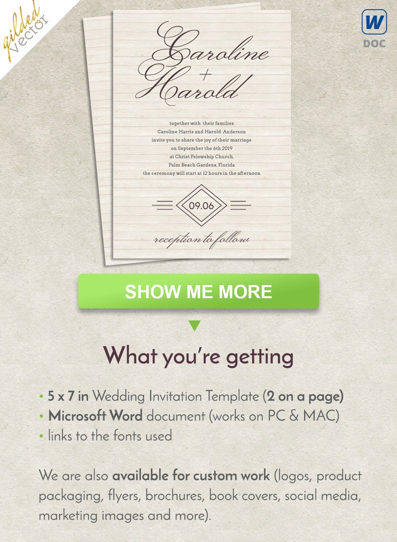 Diy Wedding Invitation Template Word Wedding Card Wedding Invitation Calligraphy Word Custom Printable Card Editable Word Template Doc